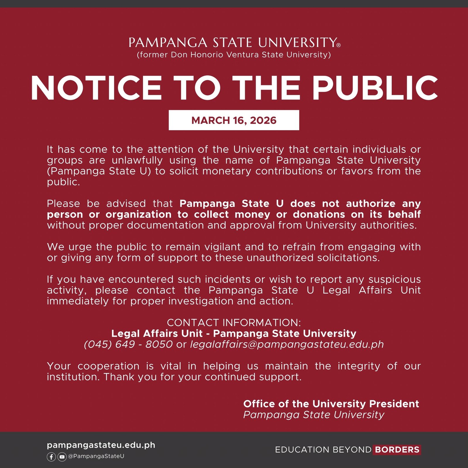 It is my pleasure to welcome you to the Pampanga State University website!