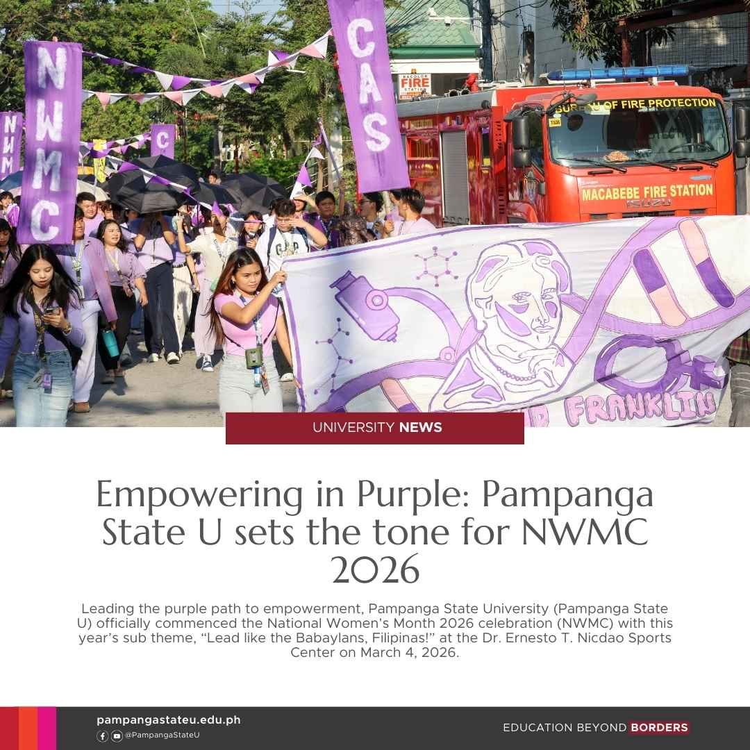 Leading the purple path to empowerment, Pampanga State University (Pampanga State U) officially commenced the National Women’s Month 2026 celebration (NWMC) with this year’s sub theme, “Lead like the Babaylans, Filipinas!” at the Dr. Ernesto T. Nicdao Sports Center on March 4, 2026.